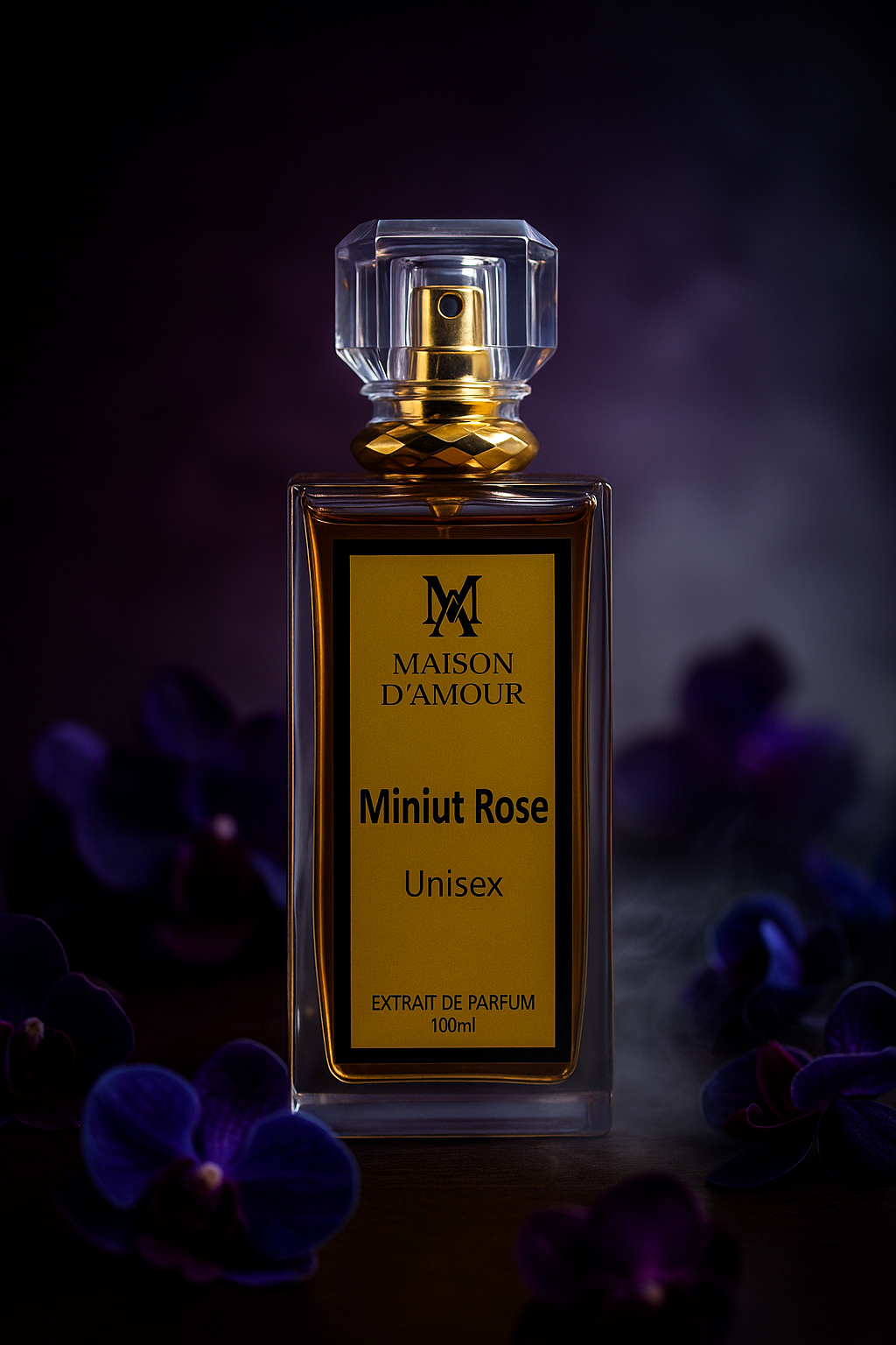 Minuit Rose — “Midnight Rose” — is an ode to quiet seduction and timeless elegance. At its heart lies a duet of the finest roses — lush Bulgarian and sensual Turkish — unfolding like petals beneath a twilight sky. Swirled with powdery violet, the fragrance deepens into warm vanilla, golden benzoin, and the rich mystery of agarwood (oud). The result is a luxurious, soft-smoke trail — romantic, refined, and unforgettable.